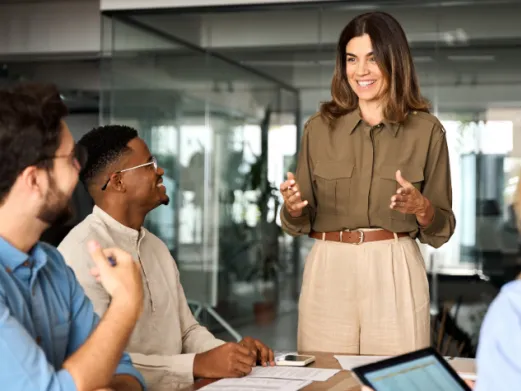 Ein regelmäßiger Austausch, ob digital via Zoom oder im Office, ist entscheidend für einen effizienten Austausch zwischen Mitarbeiter*innen in deinem Unternehmen. Sei es Updates zu teilen oder das Koordinieren von Projekten. Meetings untereinander sind hierbei Bestandteil der täglichen Kommunikation.