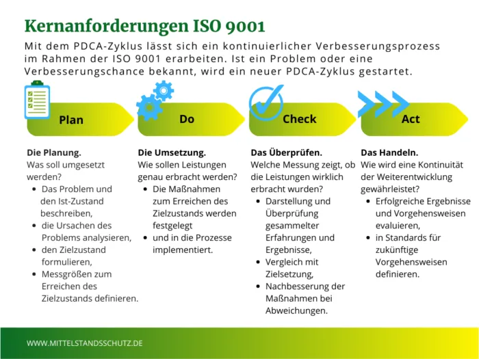 Die ISO 9001 gilt als Qualitätsmanagementnorm und beinhaltet eine Sammlung aus Mindestanforderungen, die erfüllt werden müssen, um eine QMS einzuführen und zu etablieren. Dabei werden verschiedene Grundsätze beschrieben, die als Leitlinie für das Handeln des Qualitätsbeauftragten gelten: